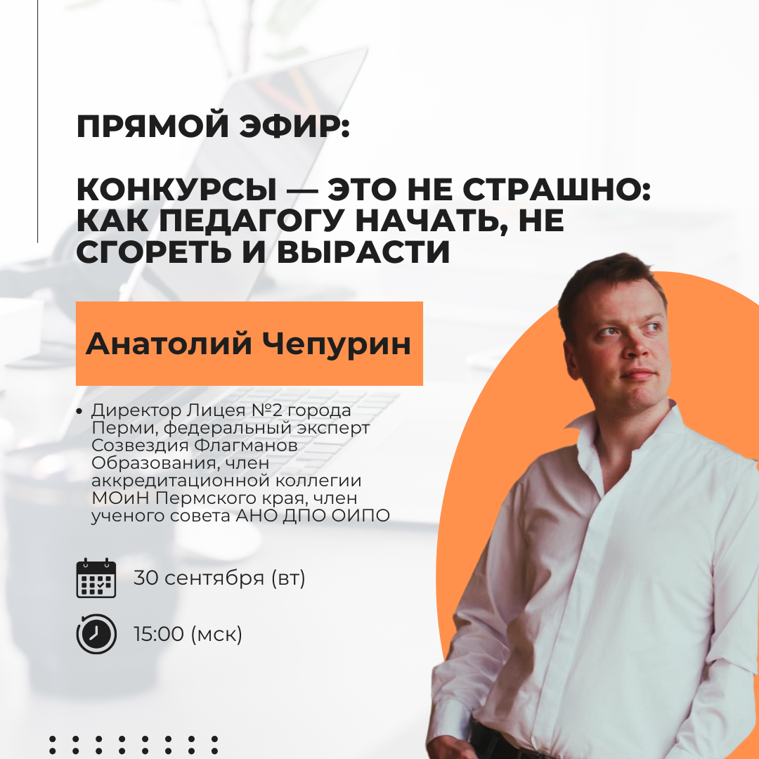 📅 30 сентября в 15:00 (по МСК) в эфире — Анатолий Чепурин, директор Лицей 2 г. Перми.